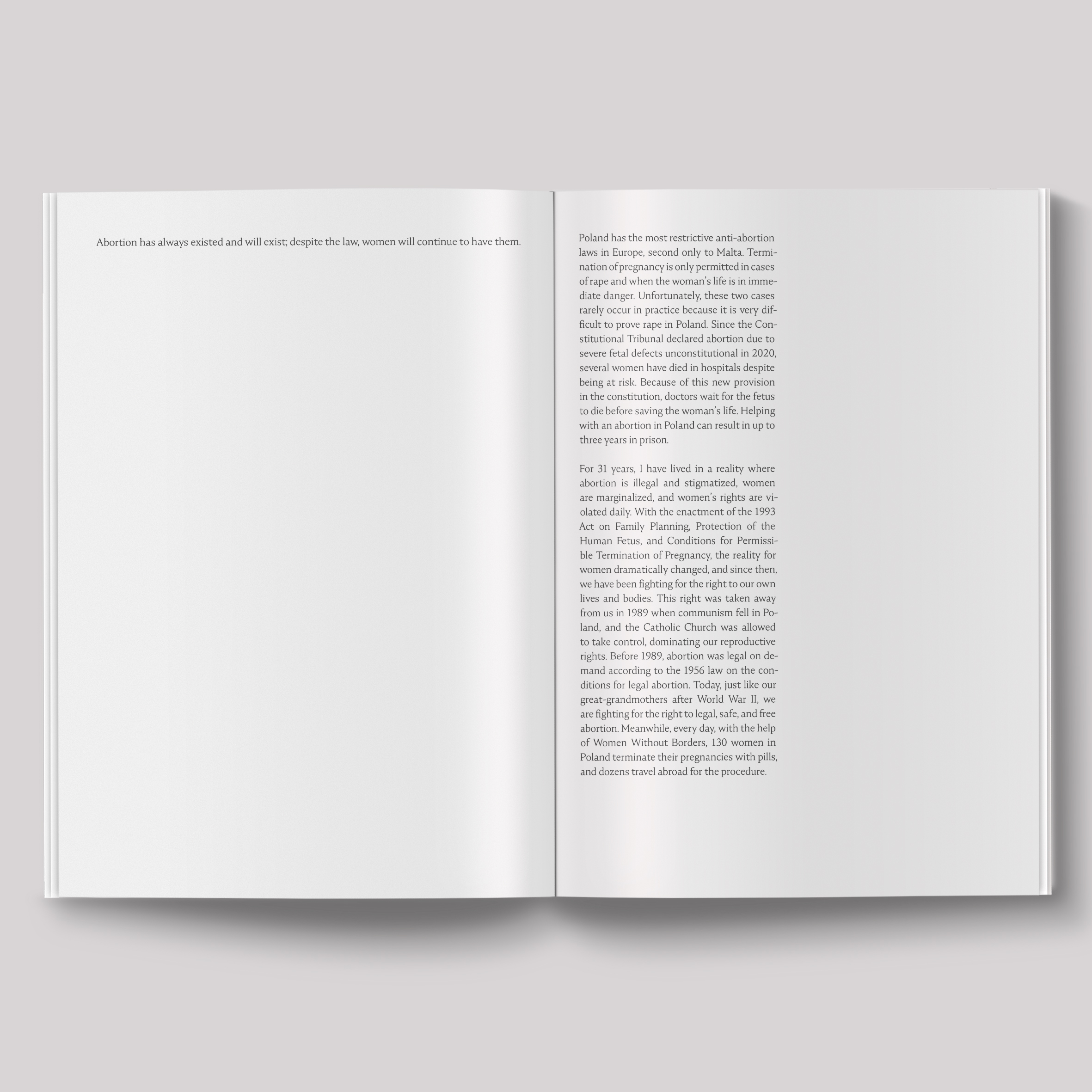 My goal in the project is to show the world that we have the right to experience abortion the way we want and how we can. And the diversity of our experiences corresponds to the diversity of our personalities and our economic, family and cultural situations. It is important to me that each story is told and presented the way the protagonist wants it to be, in her language, her traces, mementos or images. She has complete freedom in this and she will decide how and whether she wants to be presented in front of the camera.